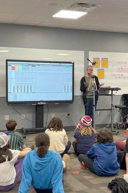 Eastman School of Music Professor Dennis DeSantis talked to French Road Elementary School fifth-grade music classes in March. He presented about digital composing and the digital music platform tha...